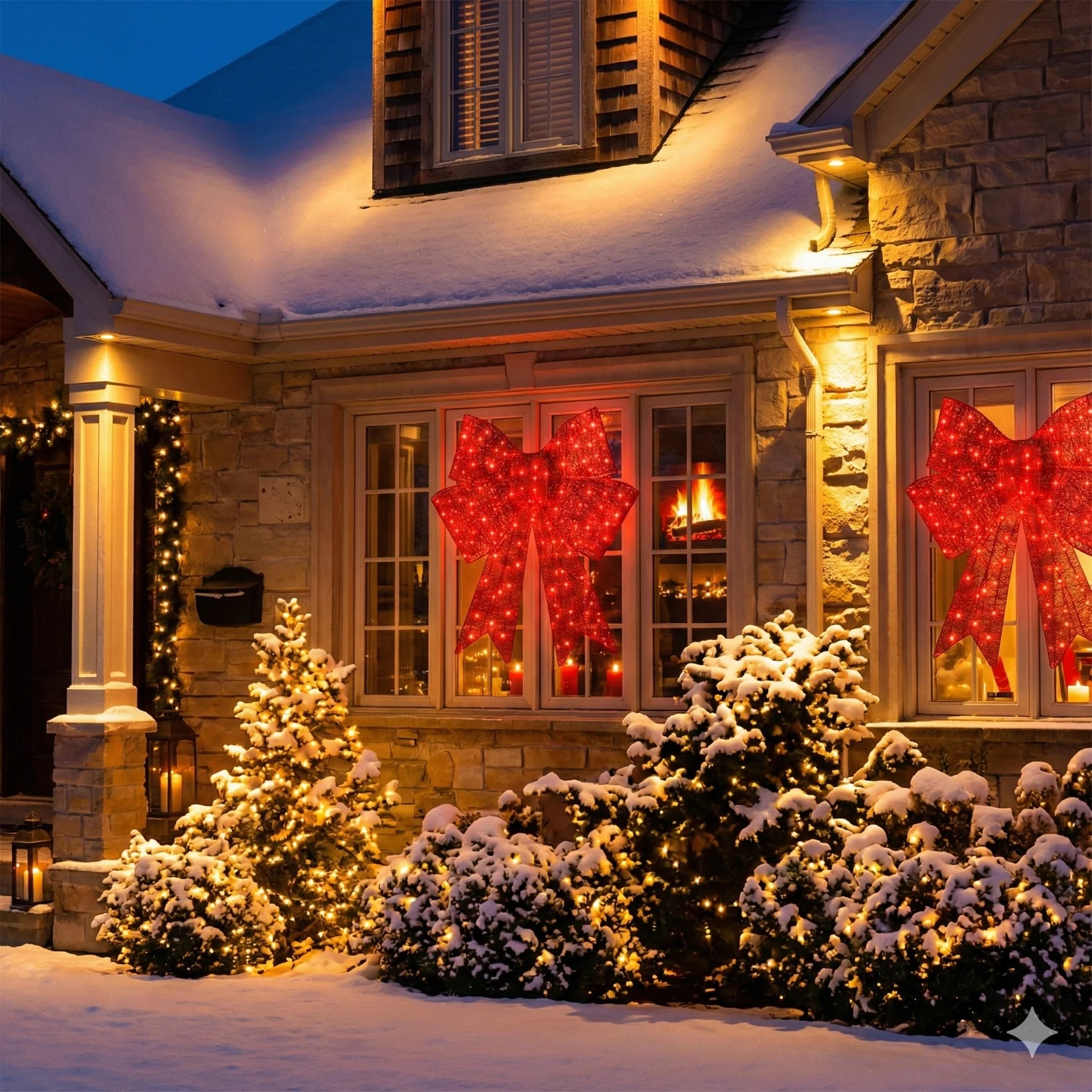 DolphinLuxeHome™ LED Christmas Bow — a festive, oversized red bow decoration that instantly transforms any door, wall or window into a cheerful holiday display.